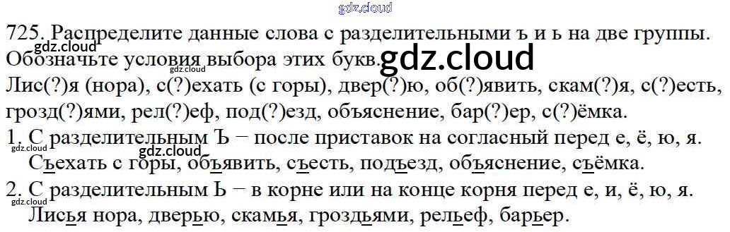 Ответ на задание 725 Учебник Русский язык за 5 (пятый) класс Баранов, Ладыженская, Тростенцова, Кулибаба, Григорян 2016, 2019 Часть 1, 2