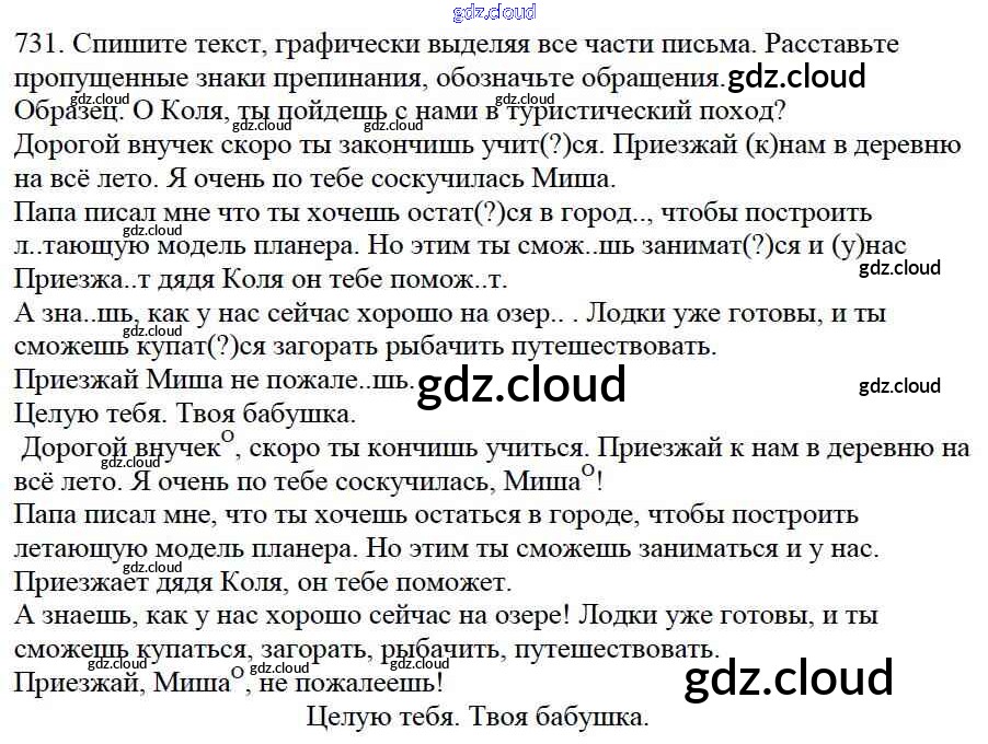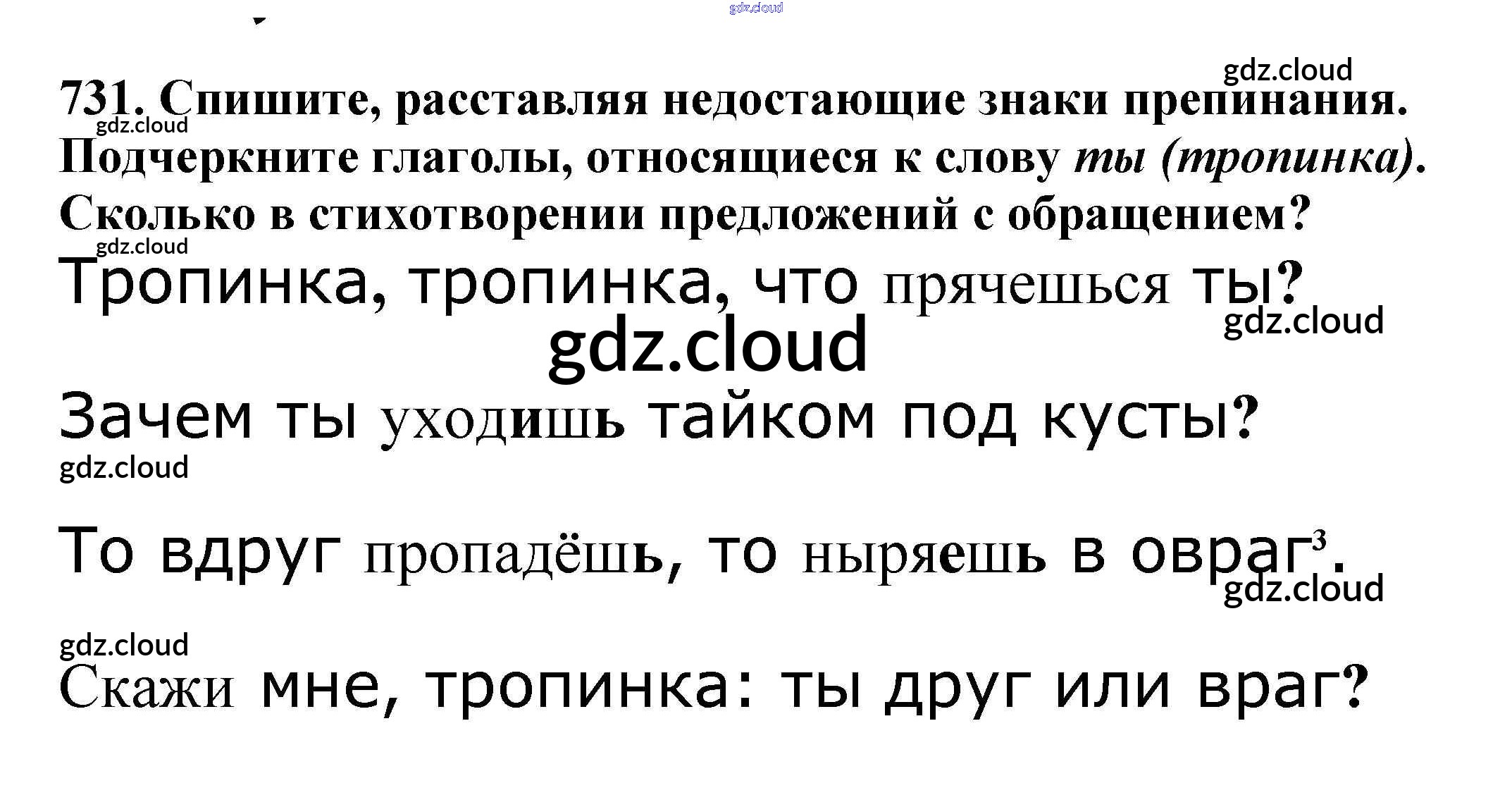 Ответ на задание 731 Учебник Русский язык за 5 (пятый) класс Баранов, Ладыженская, Тростенцова, Кулибаба, Григорян 2016, 2019 Часть 1, 2