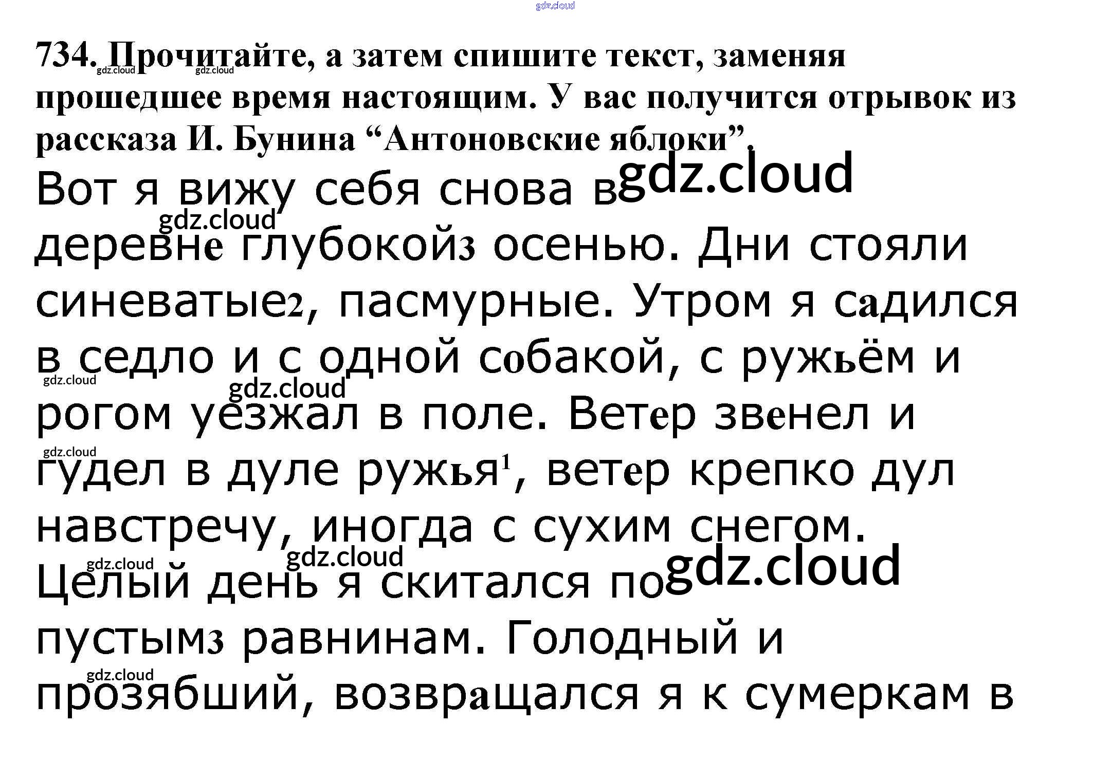 Ответ на задание 734 Учебник Русский язык за 5 (пятый) класс Баранов, Ладыженская, Тростенцова, Кулибаба, Григорян 2016, 2019 Часть 1, 2