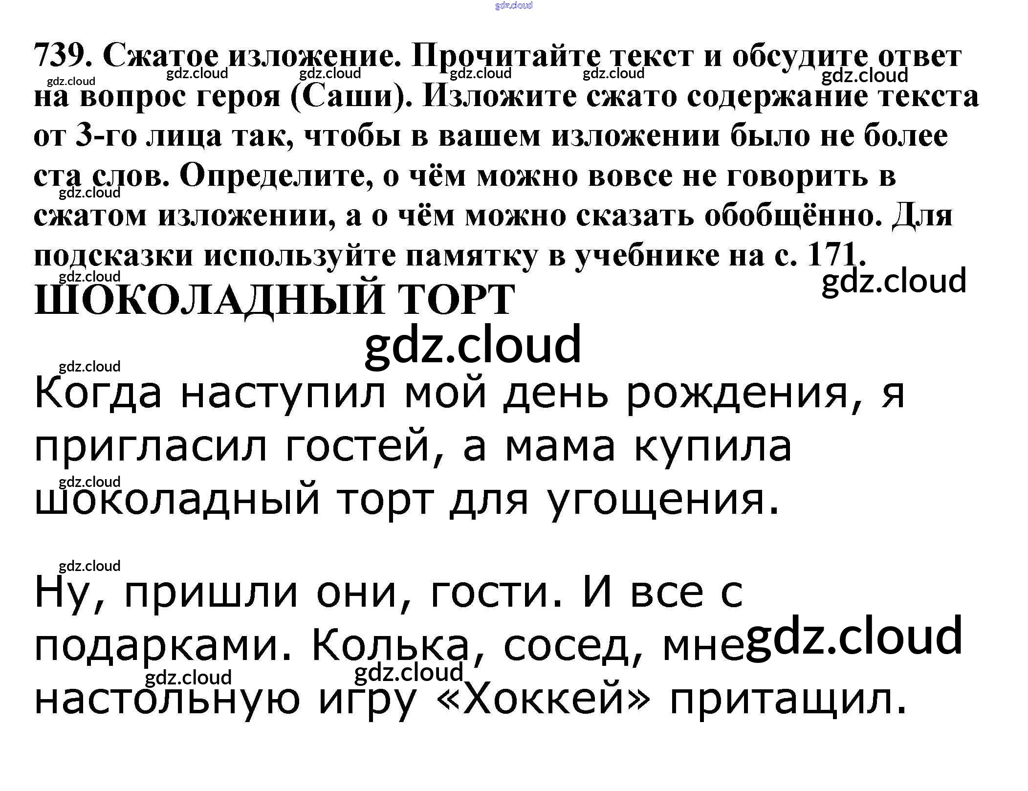 Ответ на задание 739 Учебник Русский язык за 5 (пятый) класс Баранов, Ладыженская, Тростенцова, Кулибаба, Григорян 2016, 2019 Часть 1, 2