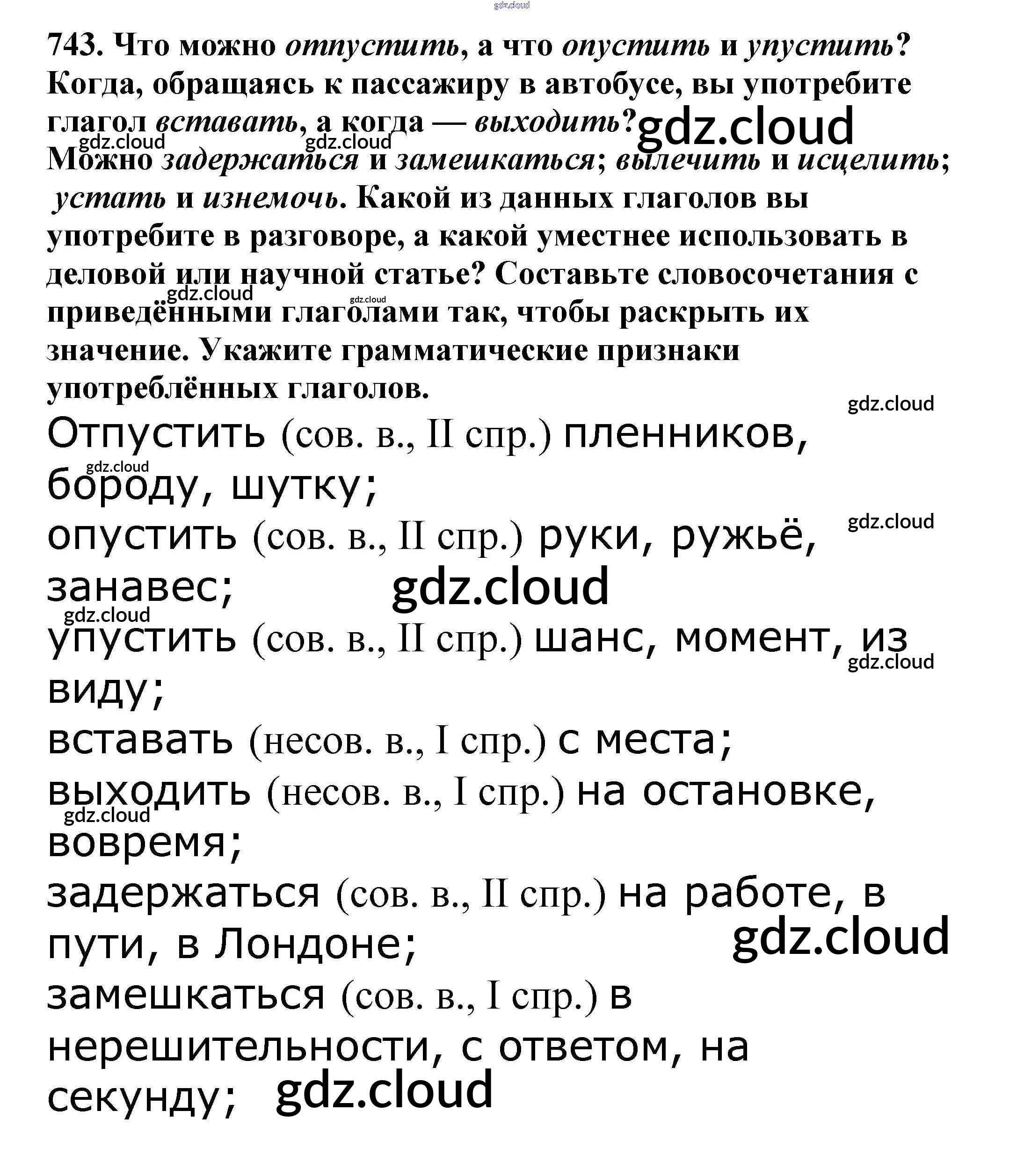Ответ на задание 743 Учебник Русский язык за 5 (пятый) класс Баранов, Ладыженская, Тростенцова, Кулибаба, Григорян 2016, 2019 Часть 1, 2