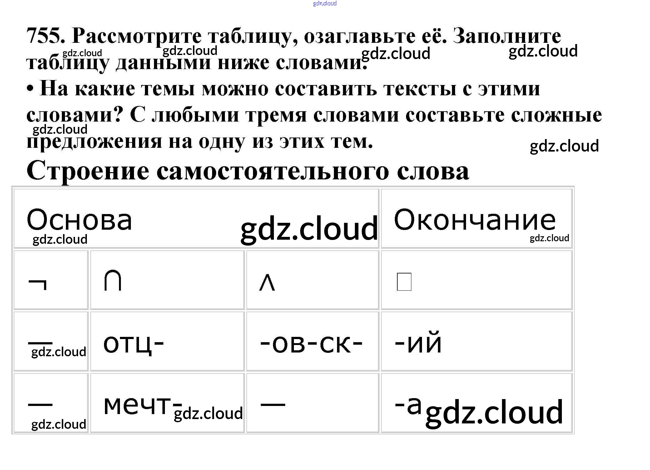 Ответ на задание 755 Учебник Русский язык за 5 (пятый) класс Баранов, Ладыженская, Тростенцова, Кулибаба, Григорян 2016, 2019 Часть 1, 2
