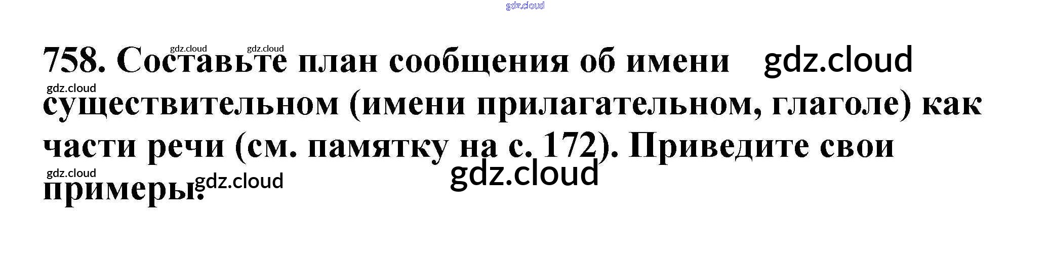 Ответ на задание 758 Учебник Русский язык за 5 (пятый) класс Баранов, Ладыженская, Тростенцова, Кулибаба, Григорян 2016, 2019 Часть 1, 2