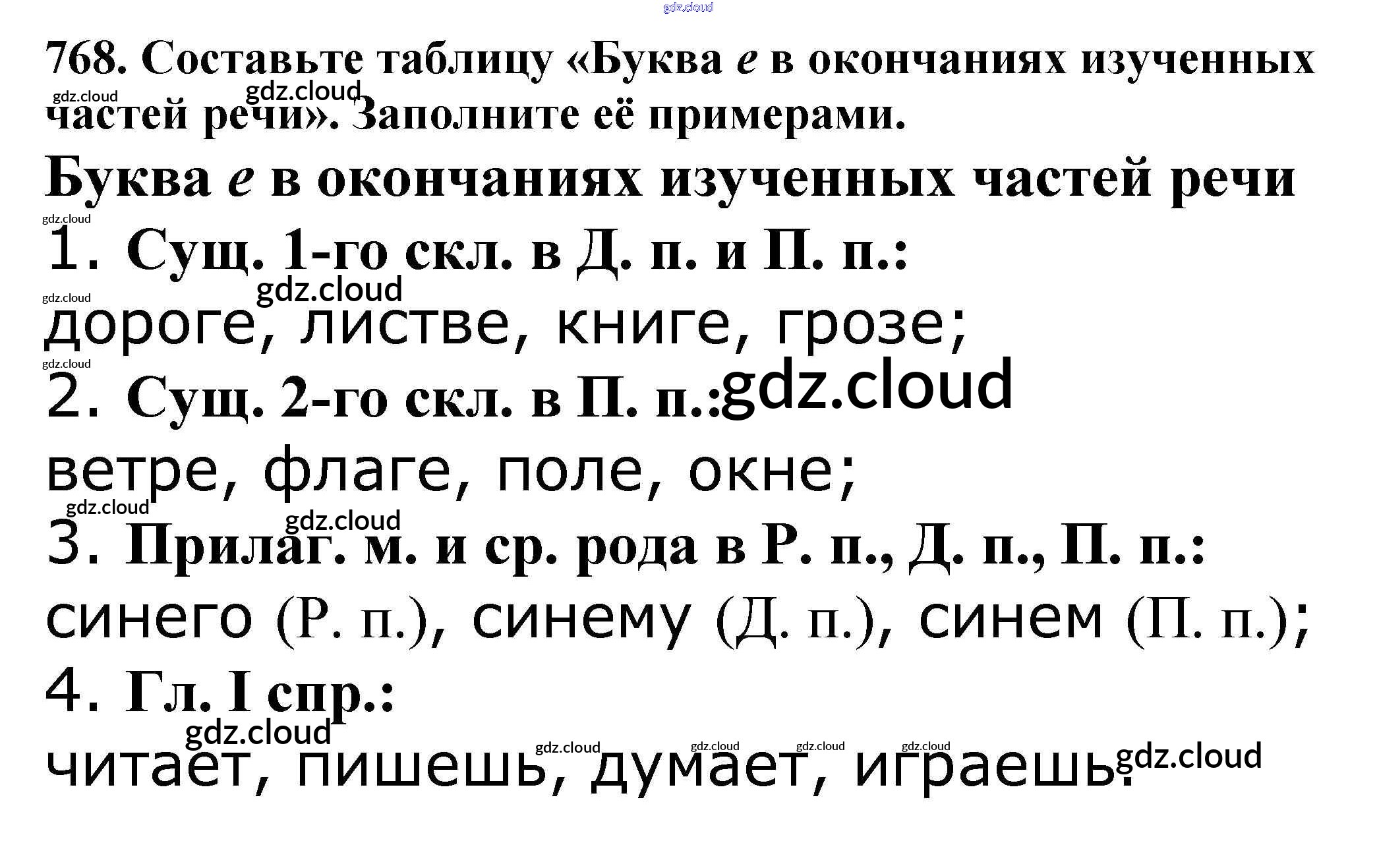 Ответ на задание 768 Учебник Русский язык за 5 (пятый) класс Баранов, Ладыженская, Тростенцова, Кулибаба, Григорян 2016, 2019 Часть 1, 2