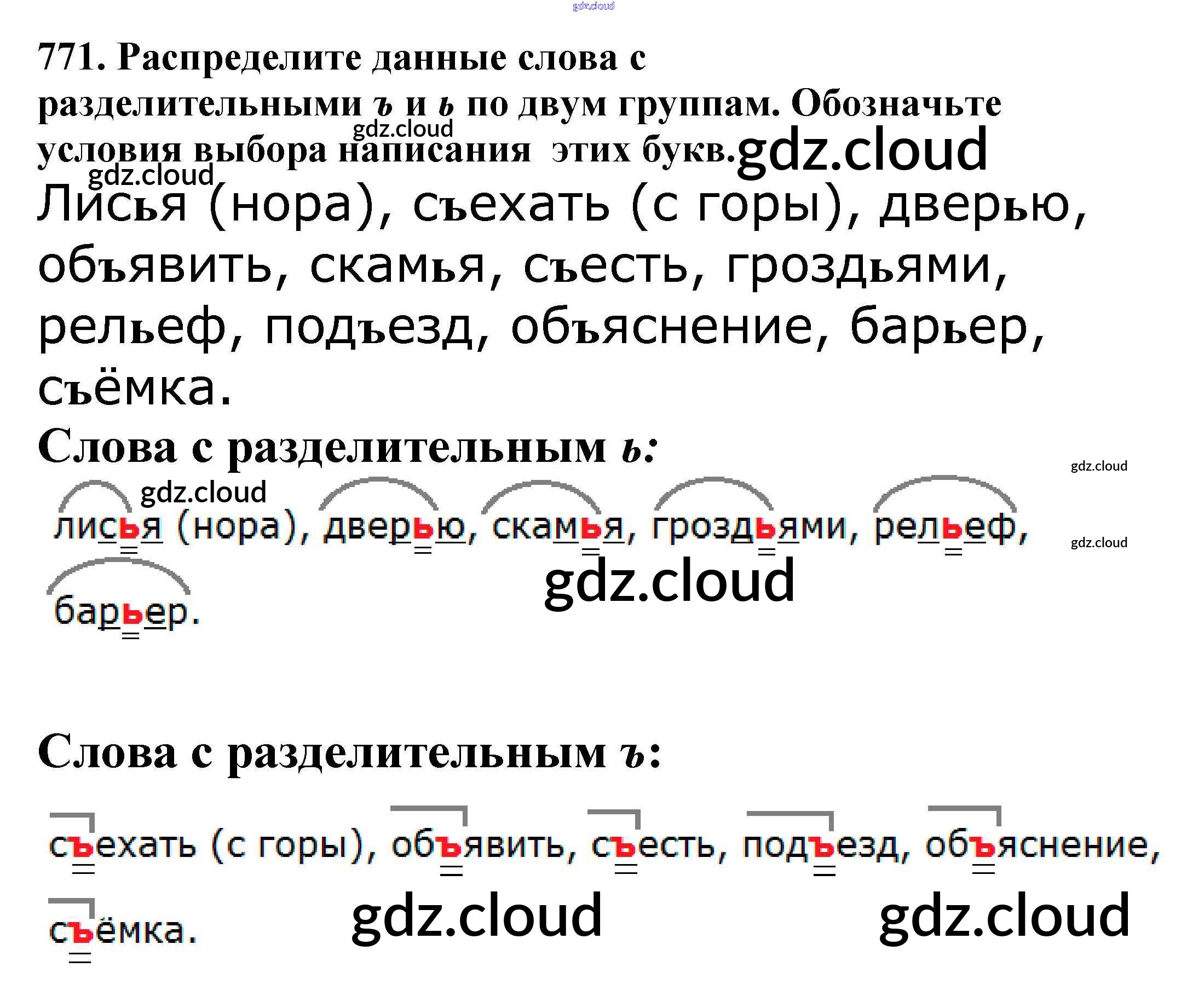 Ответ на задание 771 Учебник Русский язык за 5 (пятый) класс Баранов, Ладыженская, Тростенцова, Кулибаба, Григорян 2016, 2019 Часть 1, 2