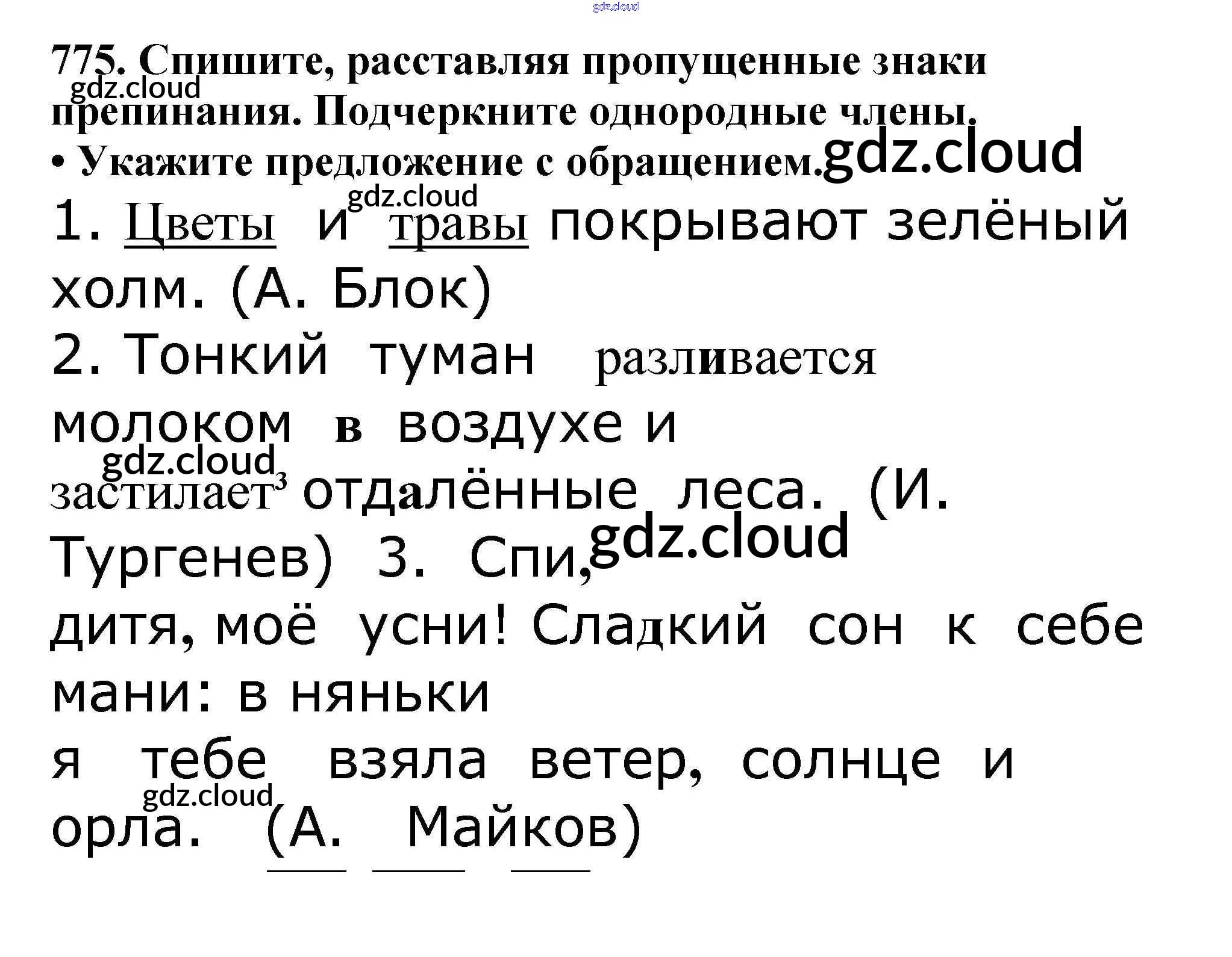 Ответ на задание 775 Учебник Русский язык за 5 (пятый) класс Баранов, Ладыженская, Тростенцова, Кулибаба, Григорян 2016, 2019 Часть 1, 2
