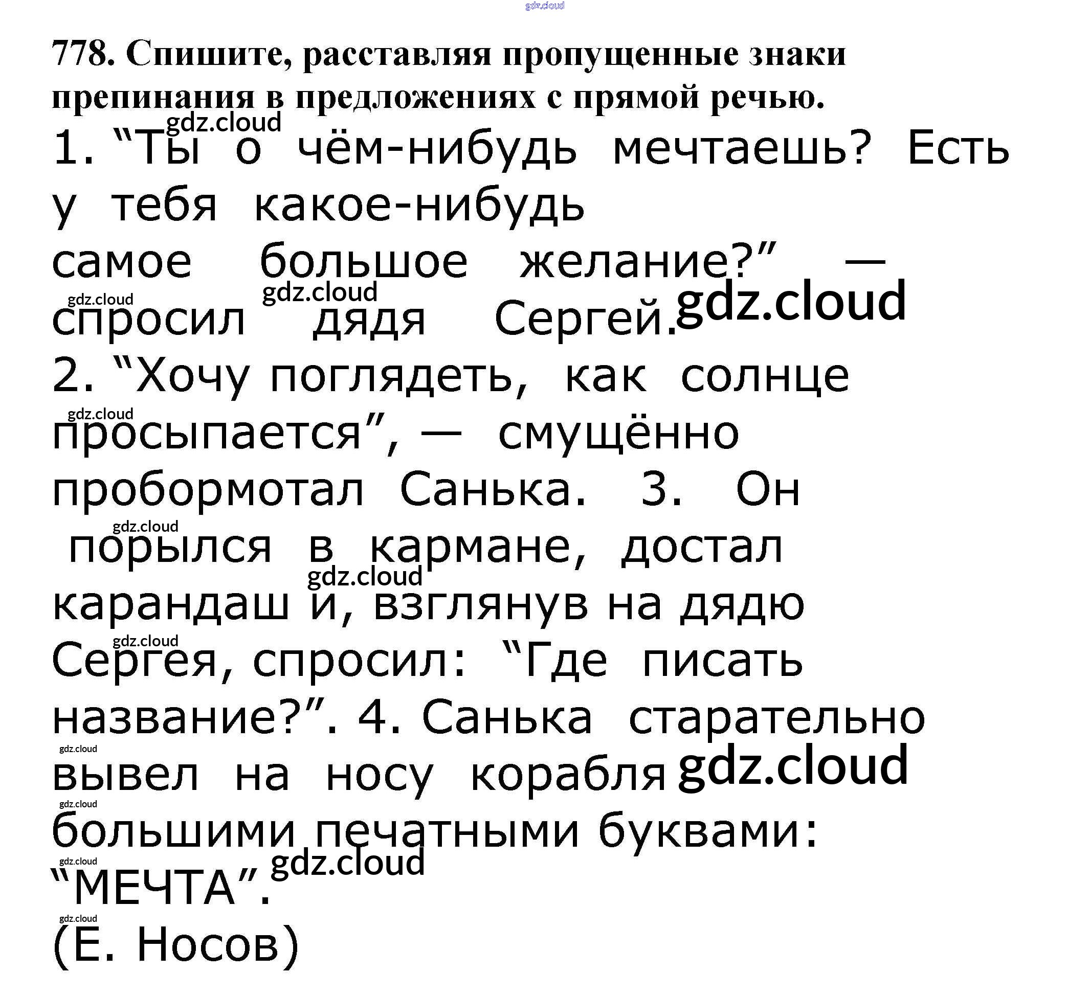 Ответ на задание 778 Учебник Русский язык за 5 (пятый) класс Баранов, Ладыженская, Тростенцова, Кулибаба, Григорян 2016, 2019 Часть 1, 2