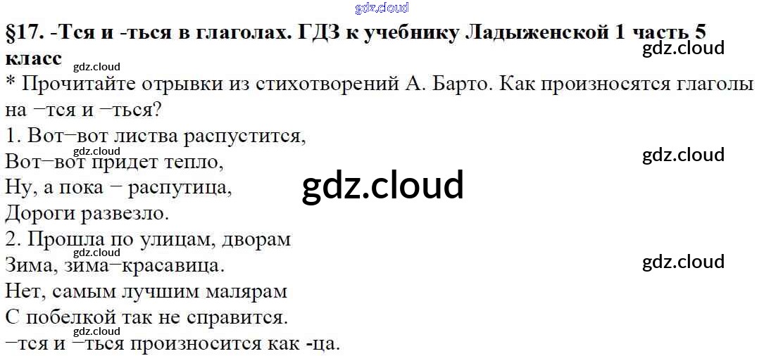 Ответ на задание §17 Учебник Русский язык за 5 (пятый) класс Баранов, Ладыженская, Тростенцова, Кулибаба, Григорян 2016, 2019 Часть 1, 2
