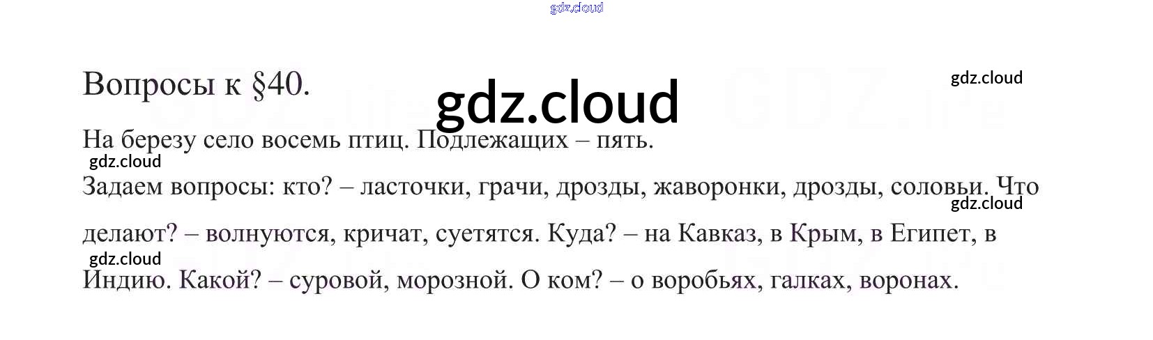 Ответ на задание §40 Учебник Русский язык за 5 (пятый) класс Баранов, Ладыженская, Тростенцова, Кулибаба, Григорян 2016, 2019 Часть 1, 2
