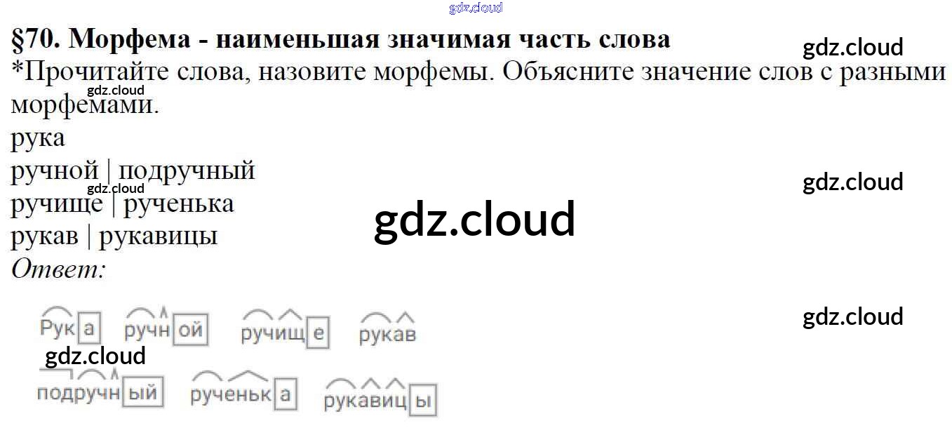 Ответ на задание §70 Учебник Русский язык за 5 (пятый) класс Баранов, Ладыженская, Тростенцова, Кулибаба, Григорян 2016, 2019 Часть 1, 2