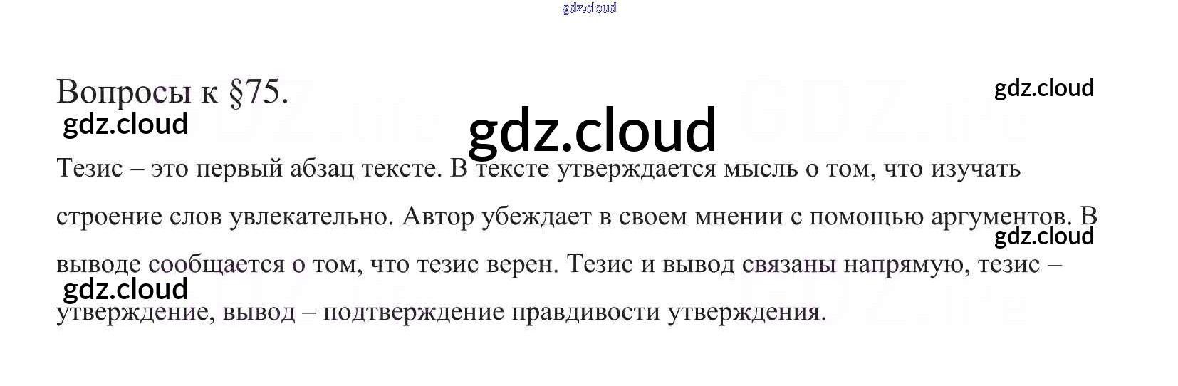 Ответ на задание §75 Учебник Русский язык за 5 (пятый) класс Баранов, Ладыженская, Тростенцова, Кулибаба, Григорян 2016, 2019 Часть 1, 2