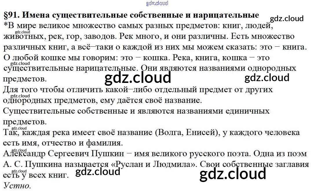 Ответ на задание §91 Учебник Русский язык за 5 (пятый) класс Баранов, Ладыженская, Тростенцова, Кулибаба, Григорян 2016, 2019 Часть 1, 2