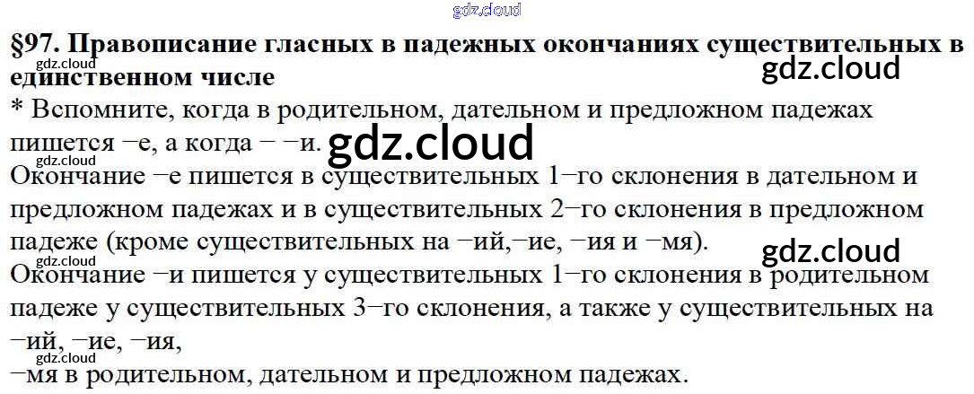 Ответ на задание §97 Учебник Русский язык за 5 (пятый) класс Баранов, Ладыженская, Тростенцова, Кулибаба, Григорян 2016, 2019 Часть 1, 2