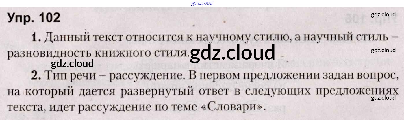 Ответ на задание 102 Учебник Русский язык за 5 (пятый) класс Мурина, Игнатович, Жадейко 2014 Часть 1, 2