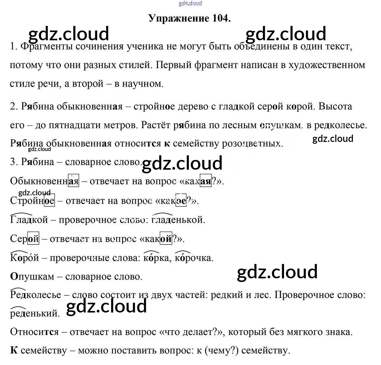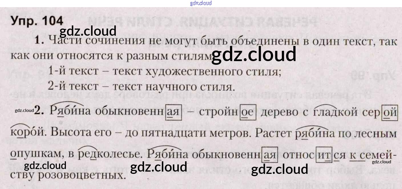 Ответ на задание 104 Учебник Русский язык за 5 (пятый) класс Мурина, Игнатович, Жадейко 2014 Часть 1, 2
