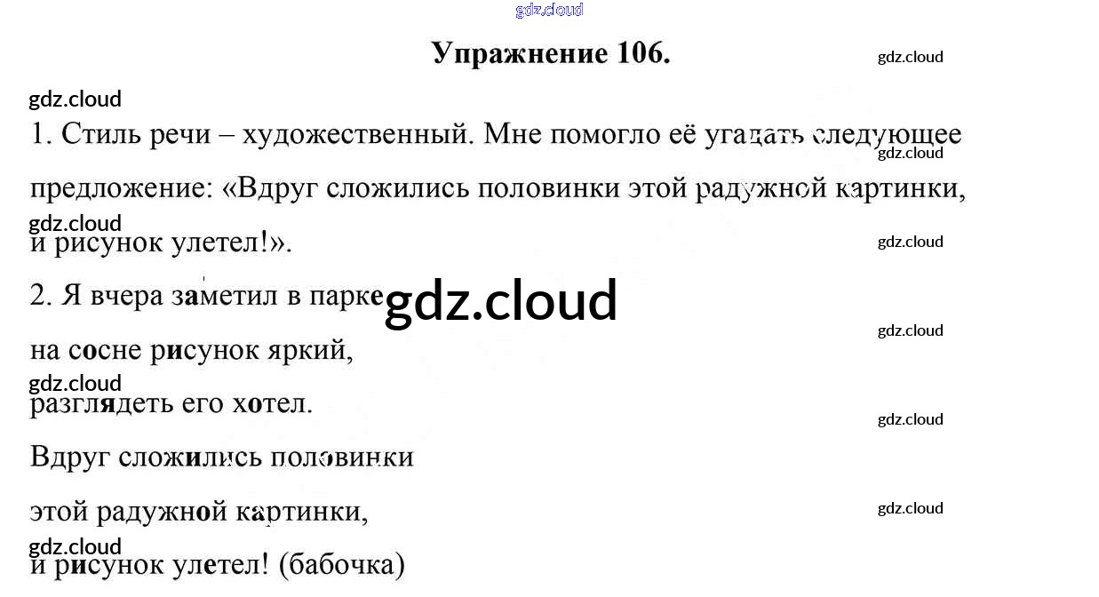 Ответ на задание 106 Учебник Русский язык за 5 (пятый) класс Мурина, Игнатович, Жадейко 2014 Часть 1, 2