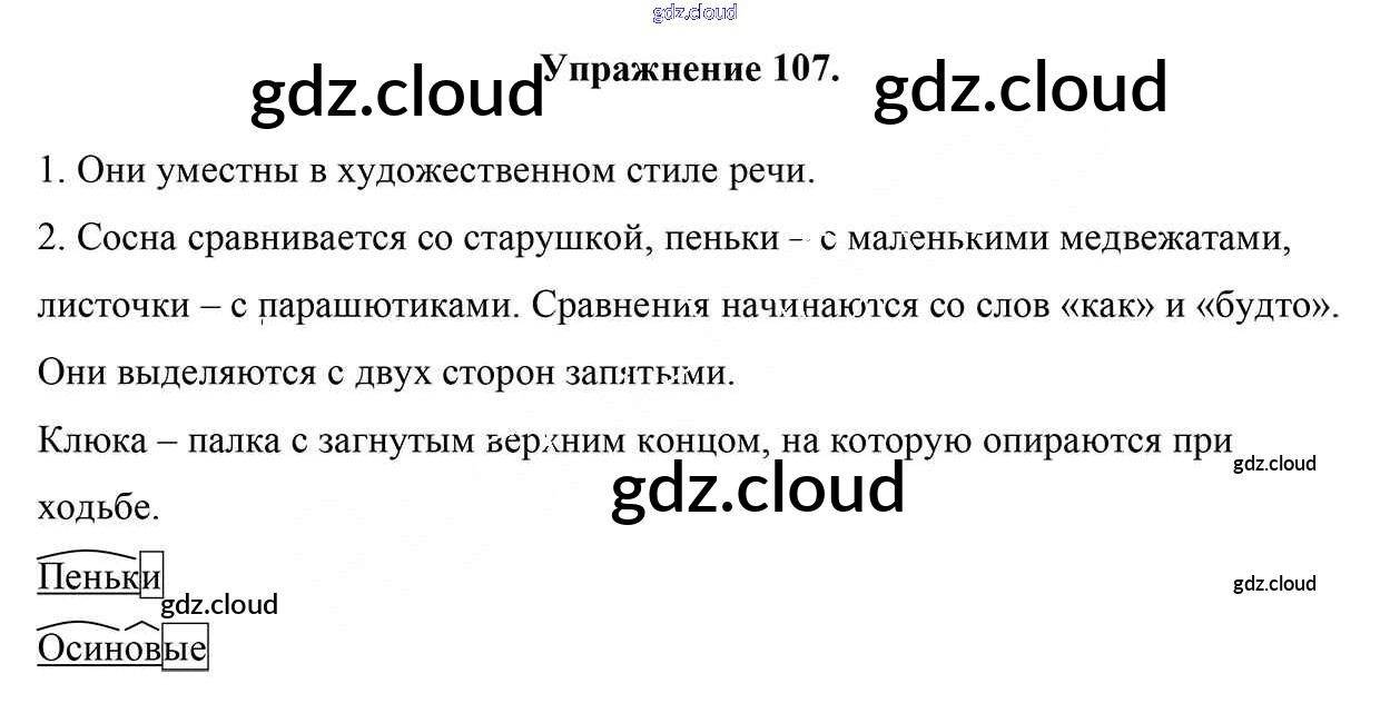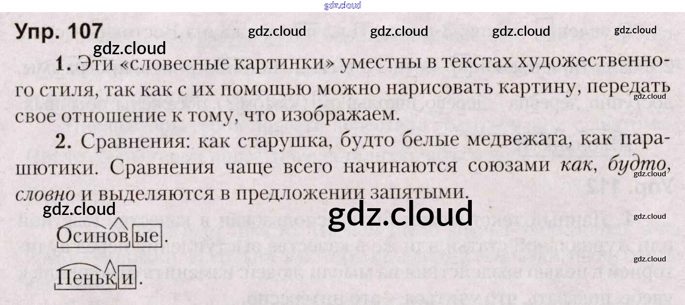 Ответ на задание 107 Учебник Русский язык за 5 (пятый) класс Мурина, Игнатович, Жадейко 2014 Часть 1, 2