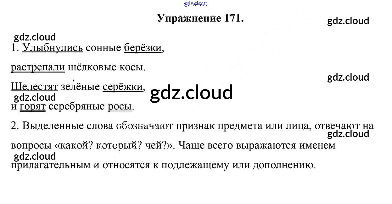 Ответ на задание 171 Учебник Русский язык за 5 (пятый) класс Мурина, Игнатович, Жадейко 2014 Часть 1, 2