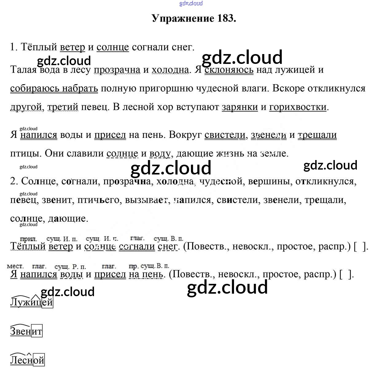 Ответ на задание 183 Учебник Русский язык за 5 (пятый) класс Мурина, Игнатович, Жадейко 2014 Часть 1, 2