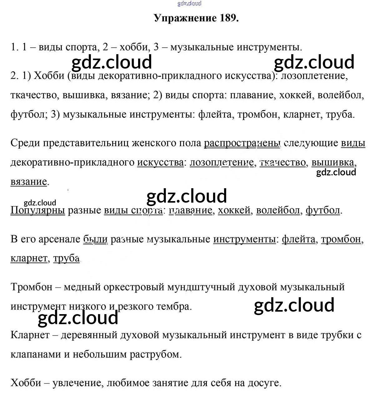 Ответ на задание 189 Учебник Русский язык за 5 (пятый) класс Мурина, Игнатович, Жадейко 2014 Часть 1, 2