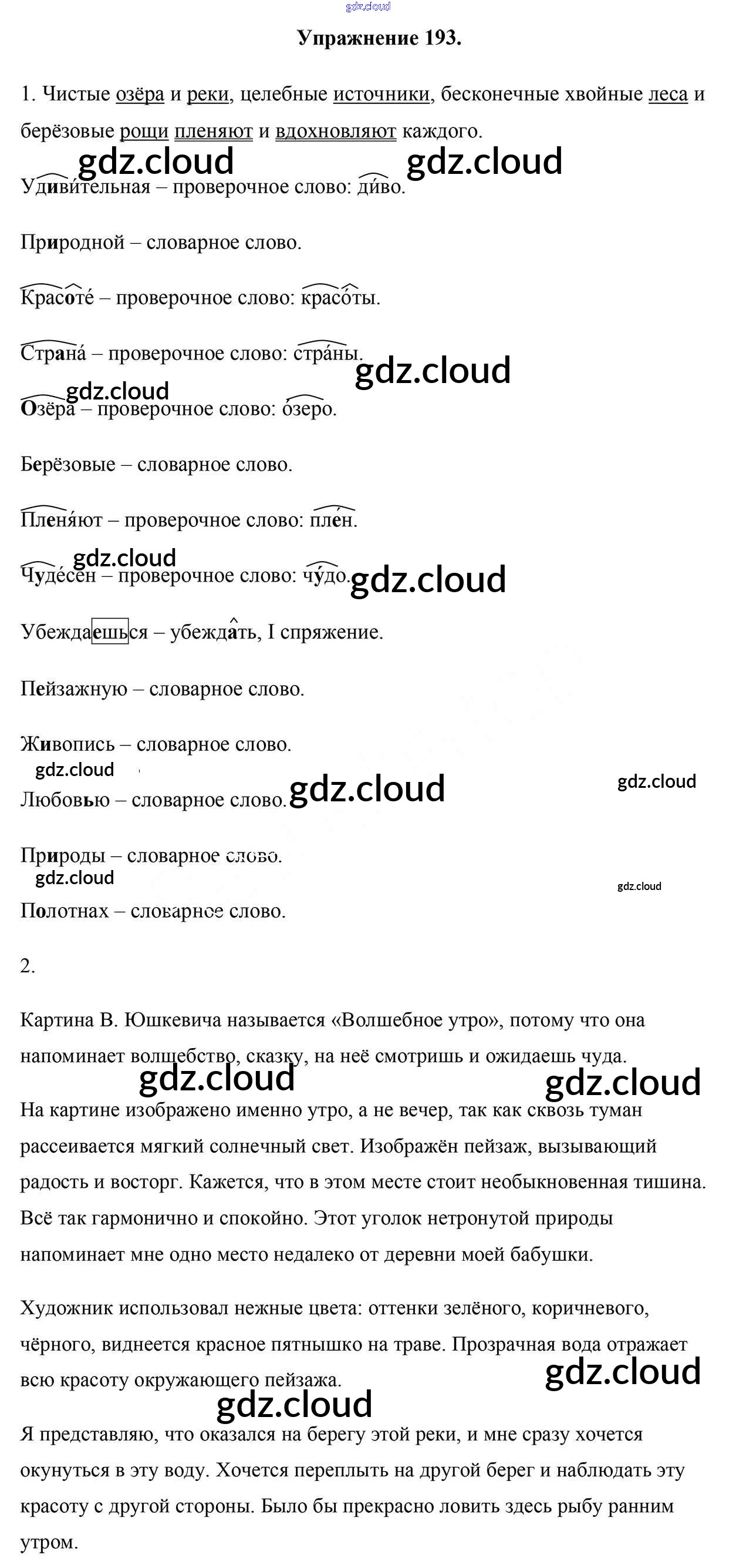 Ответ на задание 193 Учебник Русский язык за 5 (пятый) класс Мурина, Игнатович, Жадейко 2014 Часть 1, 2