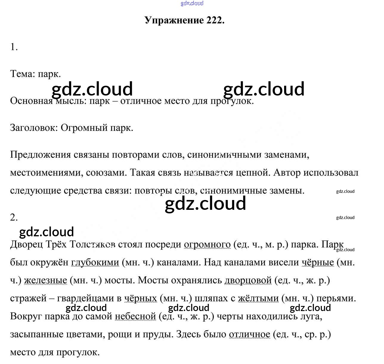 Ответ на задание 222 Учебник Русский язык за 5 (пятый) класс Мурина, Игнатович, Жадейко 2014 Часть 1, 2