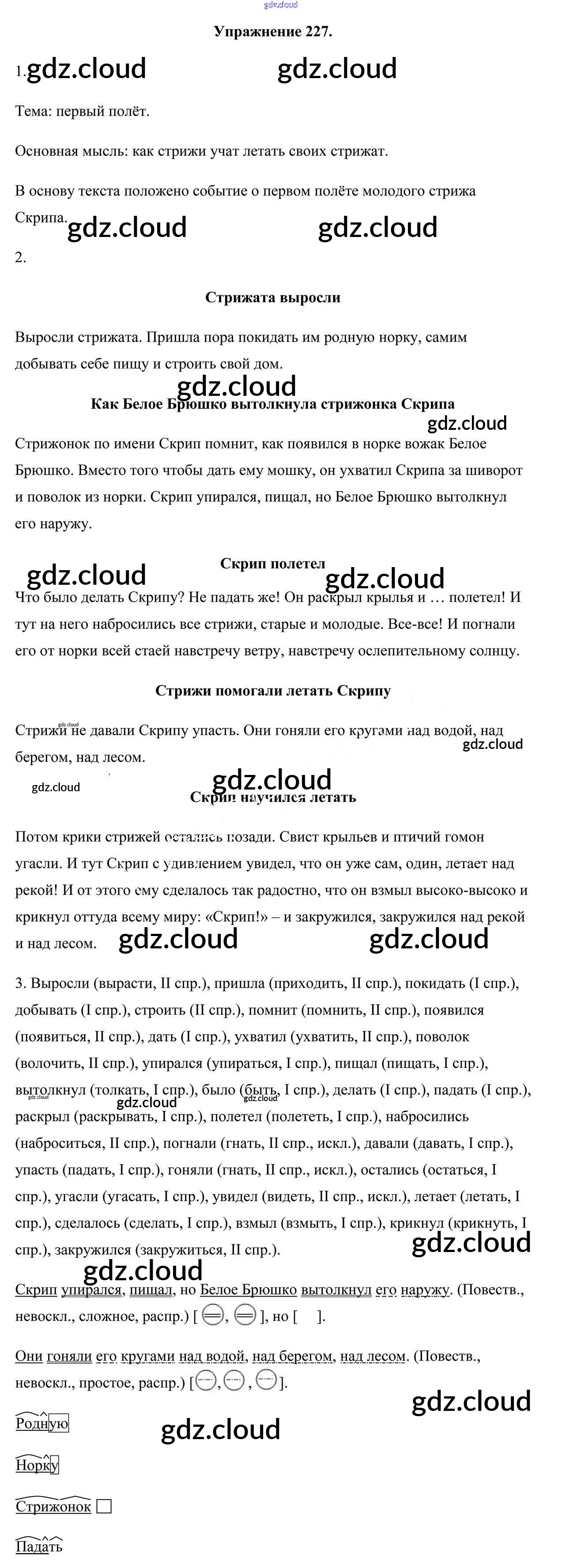 Ответ на задание 227 Учебник Русский язык за 5 (пятый) класс Мурина, Игнатович, Жадейко 2014 Часть 1, 2