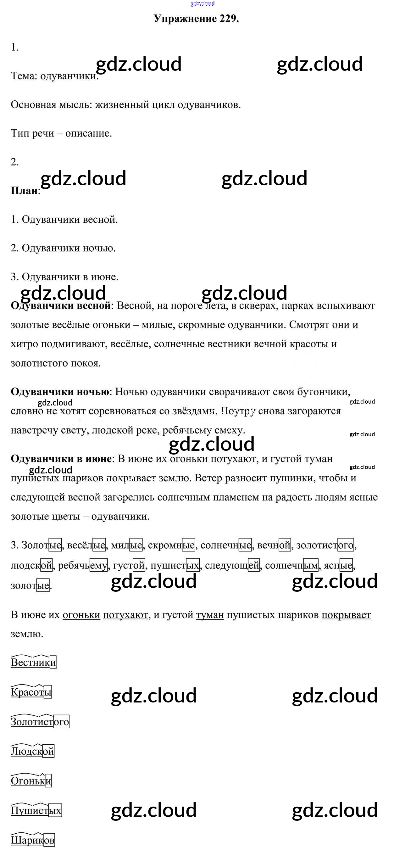 Ответ на задание 229 Учебник Русский язык за 5 (пятый) класс Мурина, Игнатович, Жадейко 2014 Часть 1, 2