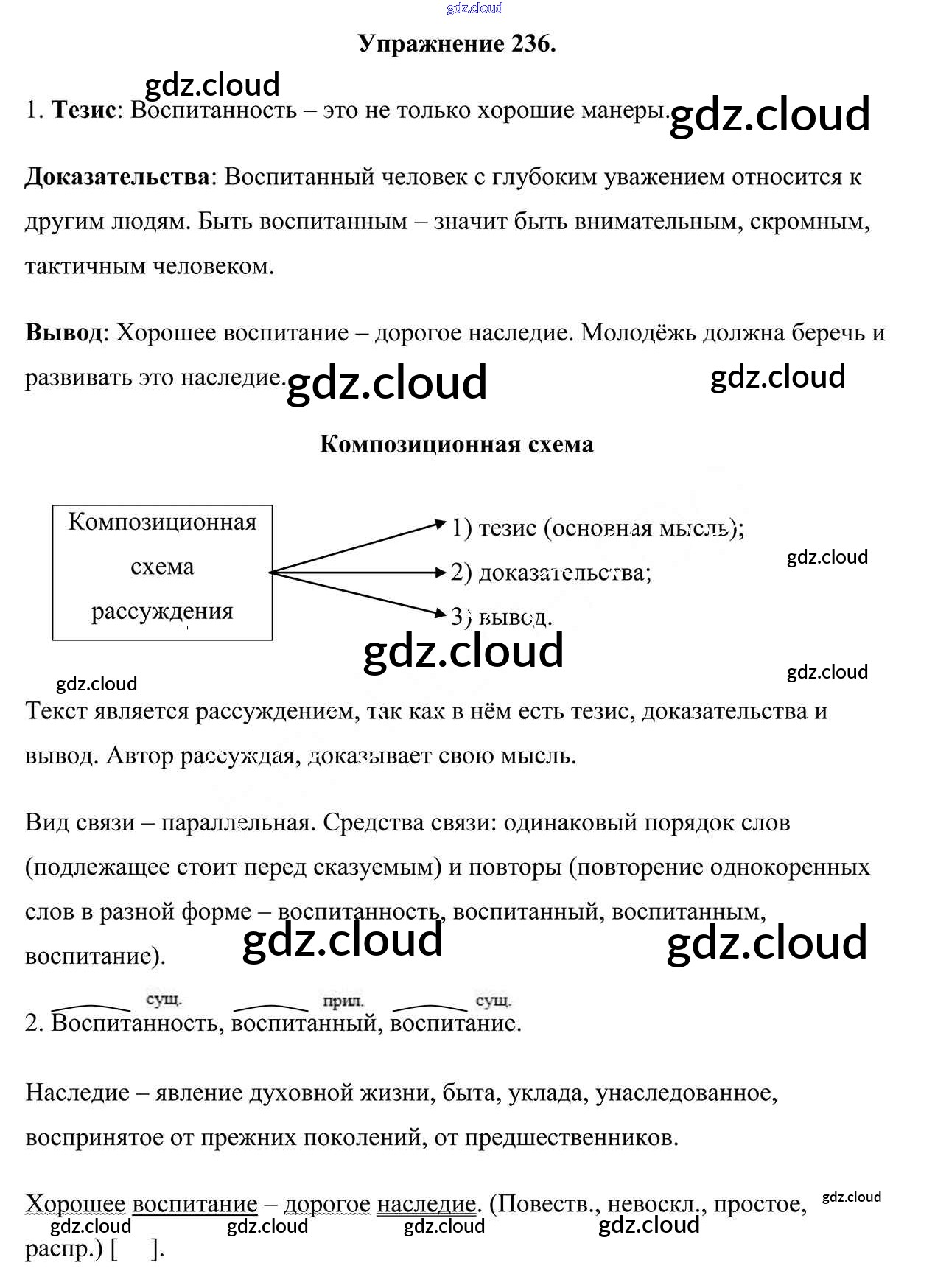 Ответ на задание 236 Учебник Русский язык за 5 (пятый) класс Мурина, Игнатович, Жадейко 2014 Часть 1, 2