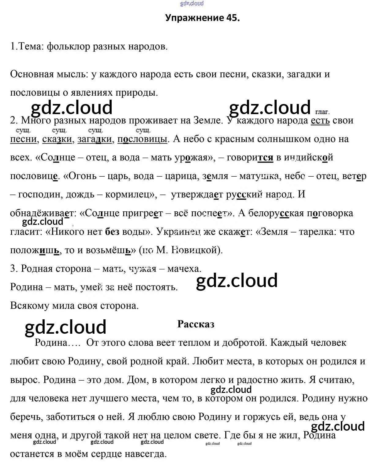 Ответ на задание 45 Учебник Русский язык за 5 (пятый) класс Мурина, Игнатович, Жадейко 2014 Часть 1, 2