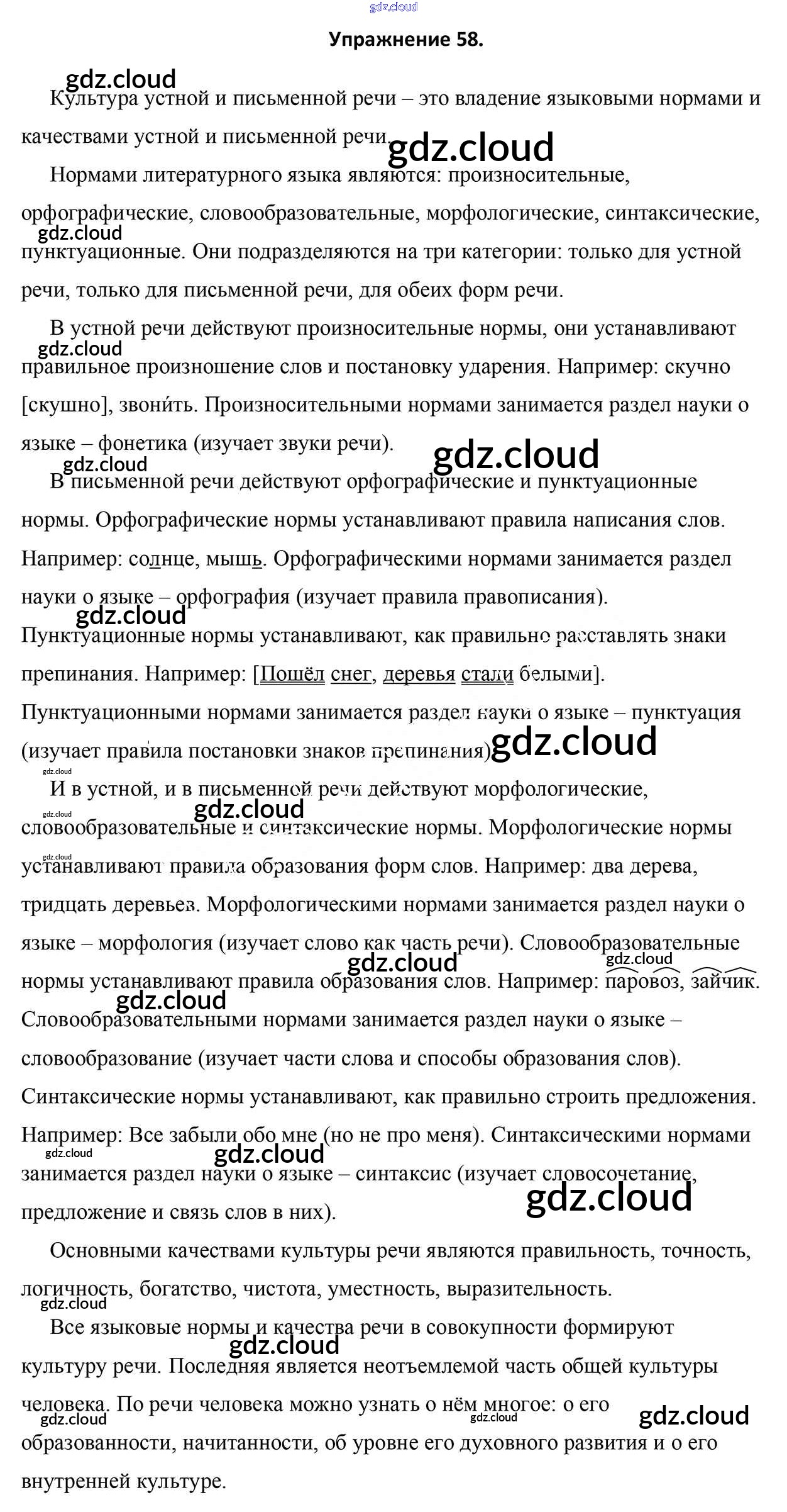 Ответ на задание 58 Учебник Русский язык за 5 (пятый) класс Мурина, Игнатович, Жадейко 2014 Часть 1, 2