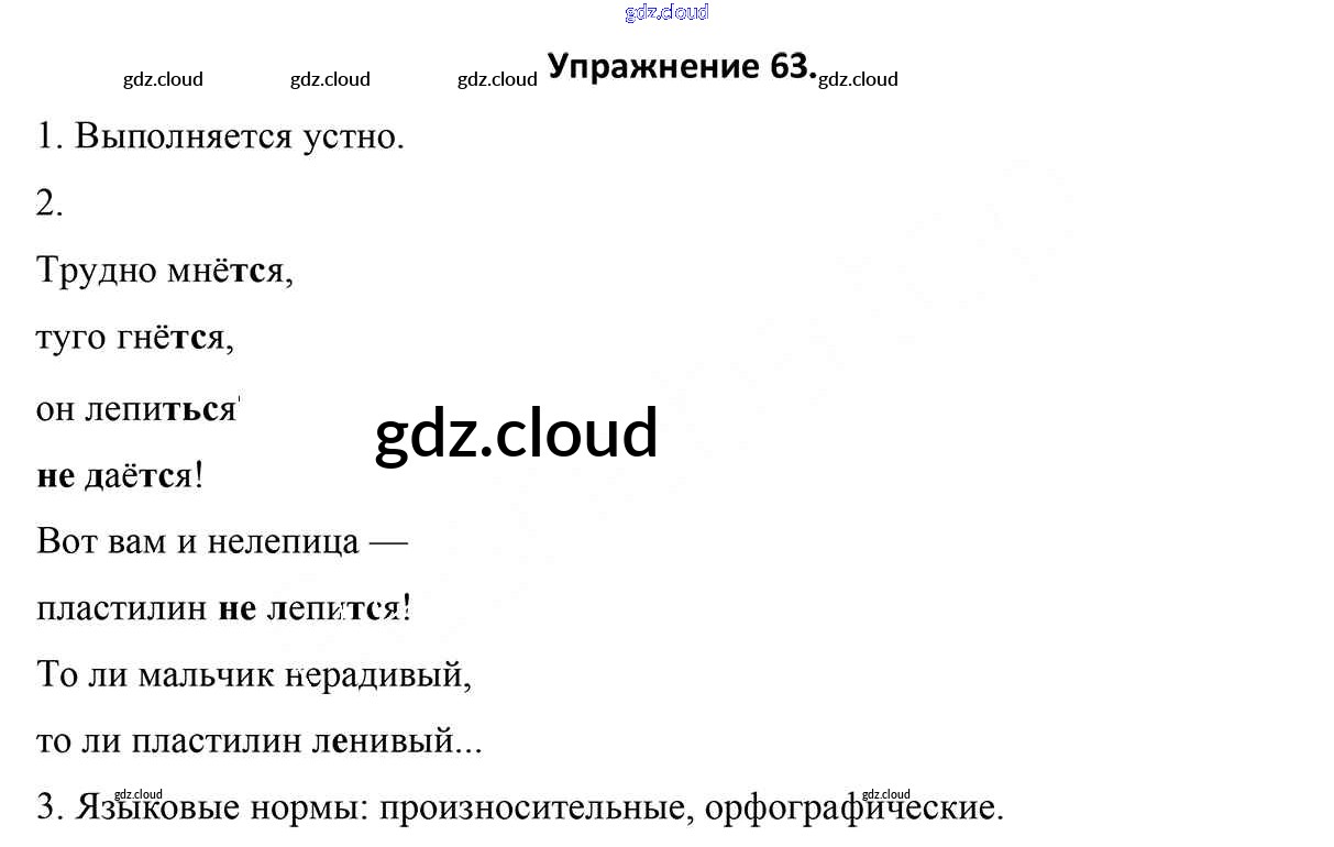 Ответ на задание 63 Учебник Русский язык за 5 (пятый) класс Мурина, Игнатович, Жадейко 2014 Часть 1, 2