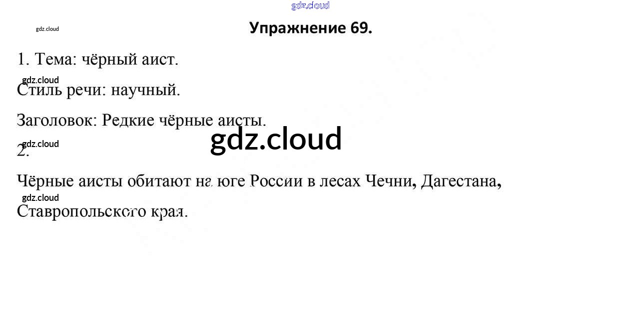 Ответ на задание 69 Учебник Русский язык за 5 (пятый) класс Мурина, Игнатович, Жадейко 2014 Часть 1, 2