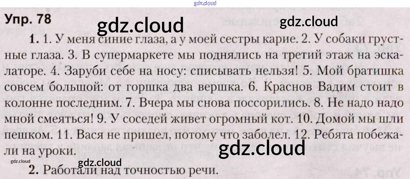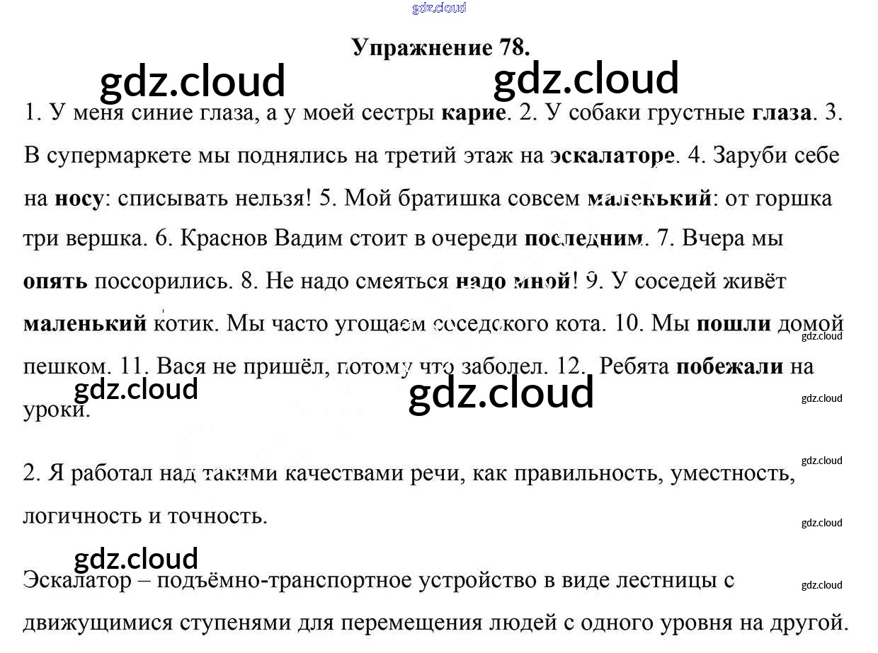 Ответ на задание 78 Учебник Русский язык за 5 (пятый) класс Мурина, Игнатович, Жадейко 2014 Часть 1, 2