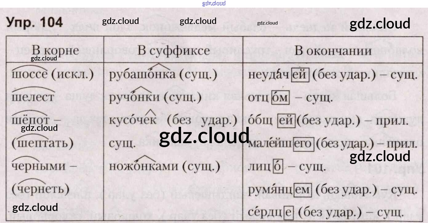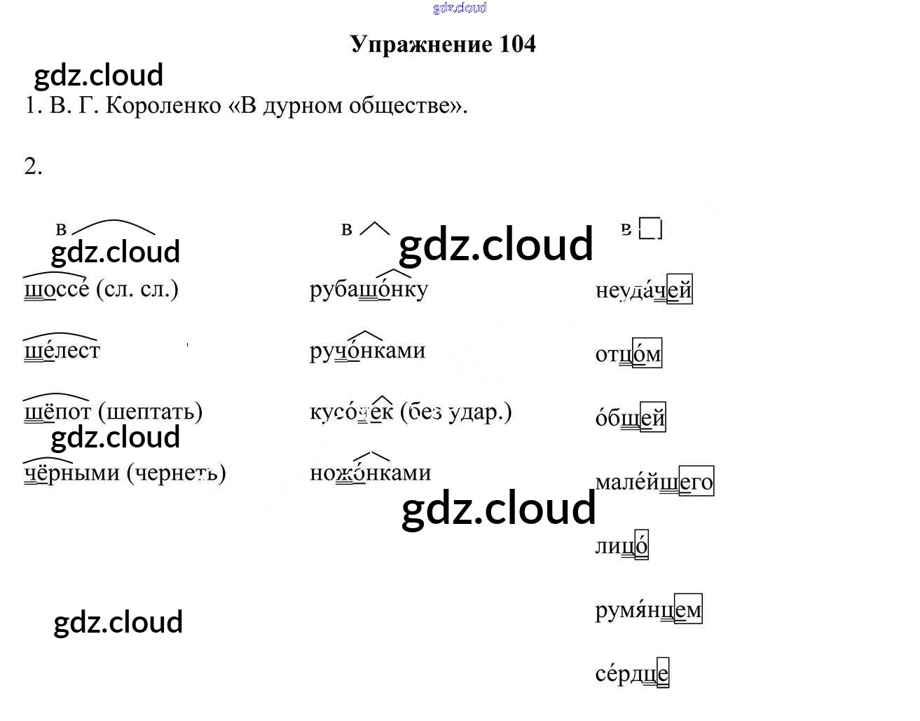 Ответ на задание 104 Учебник Русский язык за 5 (пятый) класс Мурина, Игнатович, Жадейко 2014 Часть 1, 2