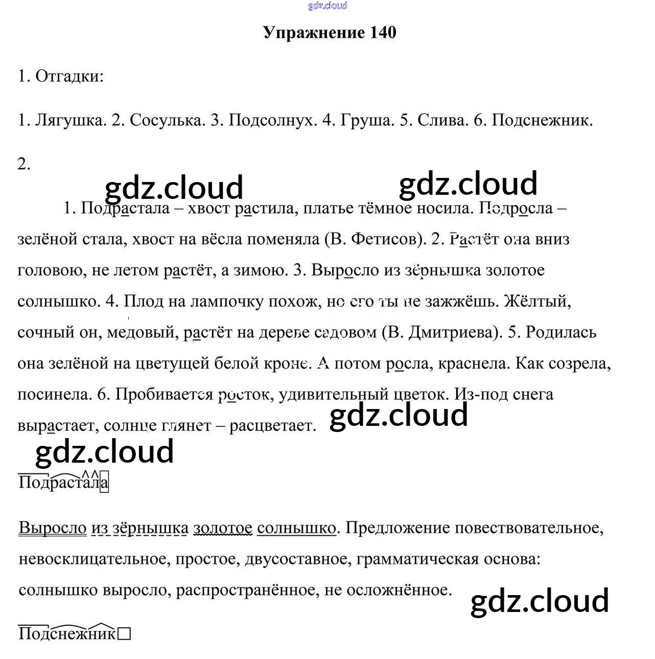 Ответ на задание 140 Учебник Русский язык за 5 (пятый) класс Мурина, Игнатович, Жадейко 2014 Часть 1, 2