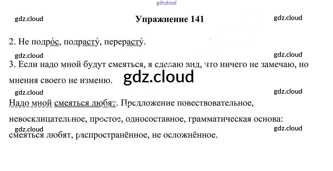 Ответ на задание 141 Учебник Русский язык за 5 (пятый) класс Мурина, Игнатович, Жадейко 2014 Часть 1, 2