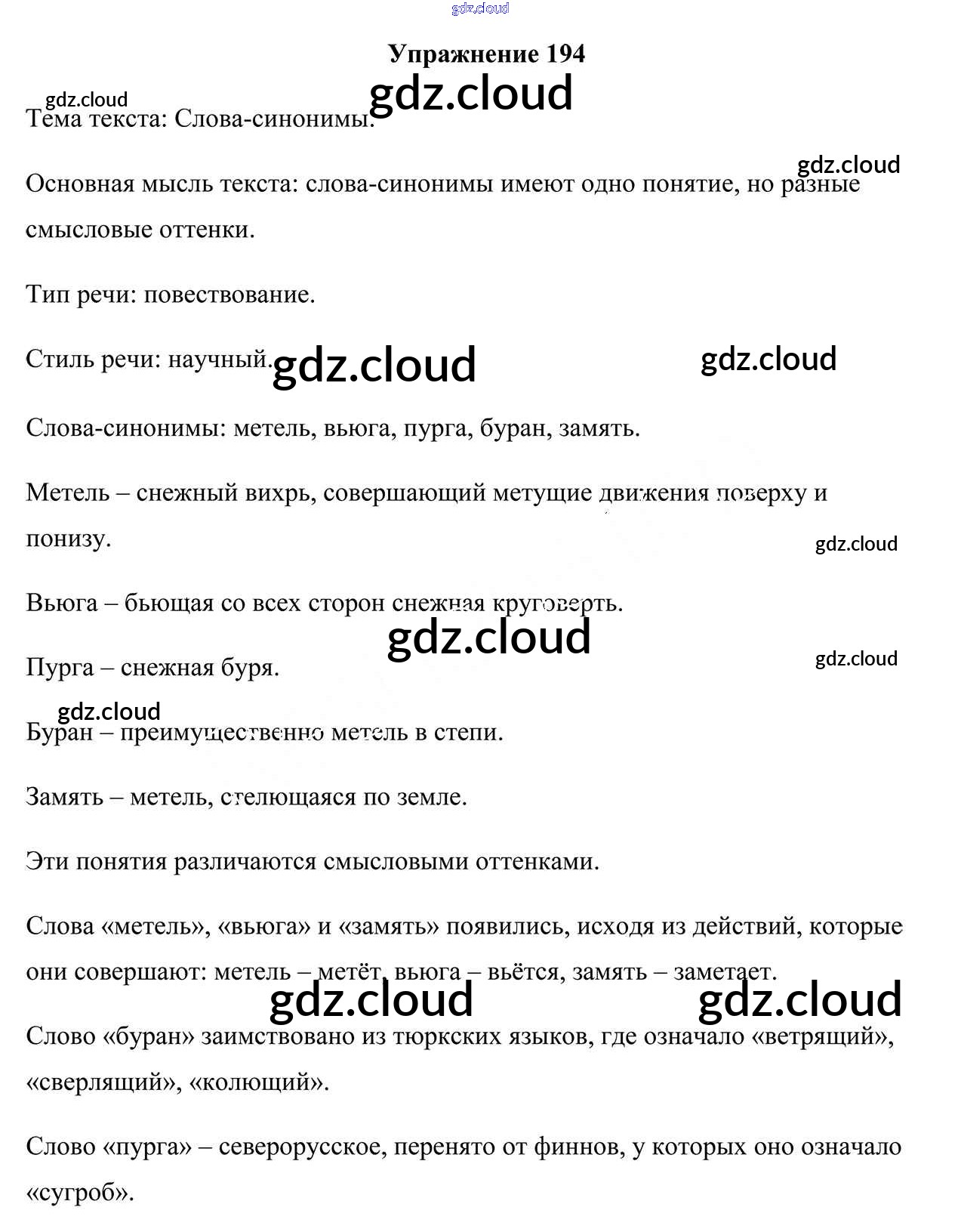 Ответ на задание 194 Учебник Русский язык за 5 (пятый) класс Мурина, Игнатович, Жадейко 2014 Часть 1, 2