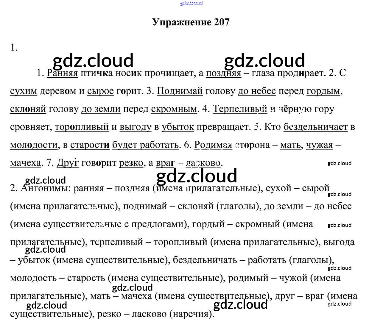 Ответ на задание 207 Учебник Русский язык за 5 (пятый) класс Мурина, Игнатович, Жадейко 2014 Часть 1, 2