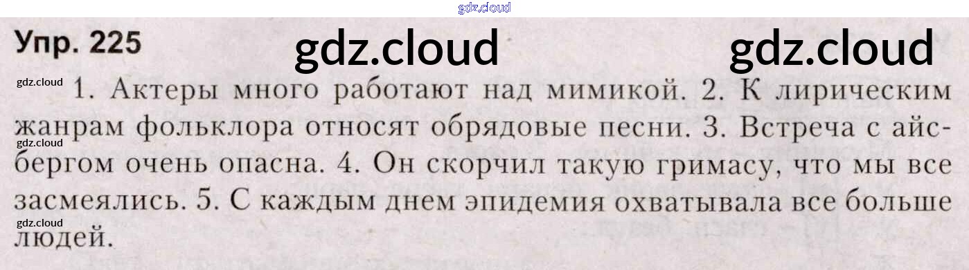 Ответ на задание 225 Учебник Русский язык за 5 (пятый) класс Мурина, Игнатович, Жадейко 2014 Часть 1, 2