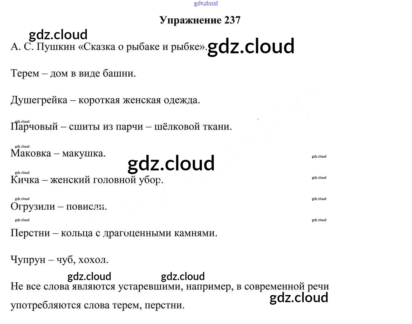 Ответ на задание 237 Учебник Русский язык за 5 (пятый) класс Мурина, Игнатович, Жадейко 2014 Часть 1, 2