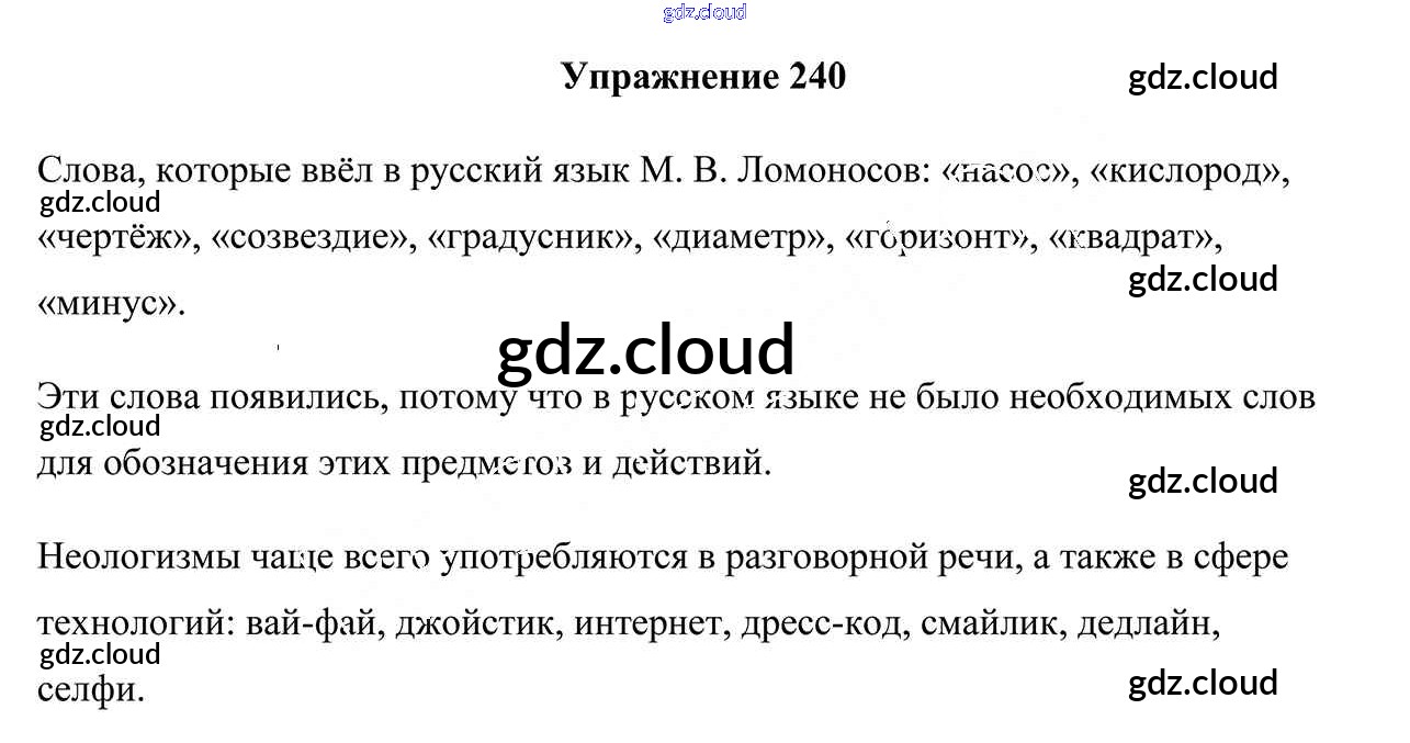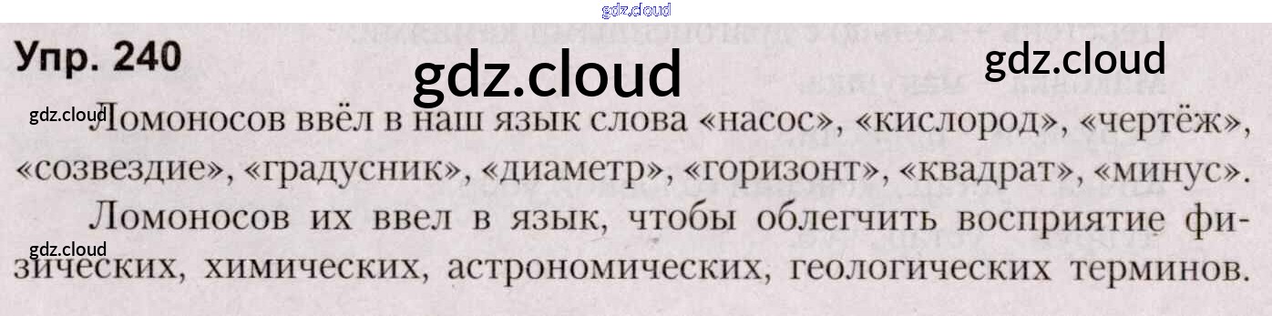 Ответ на задание 240 Учебник Русский язык за 5 (пятый) класс Мурина, Игнатович, Жадейко 2014 Часть 1, 2