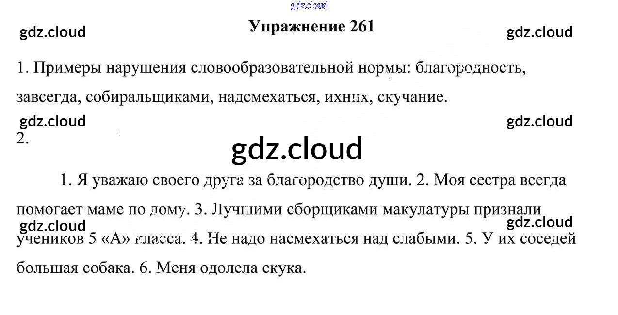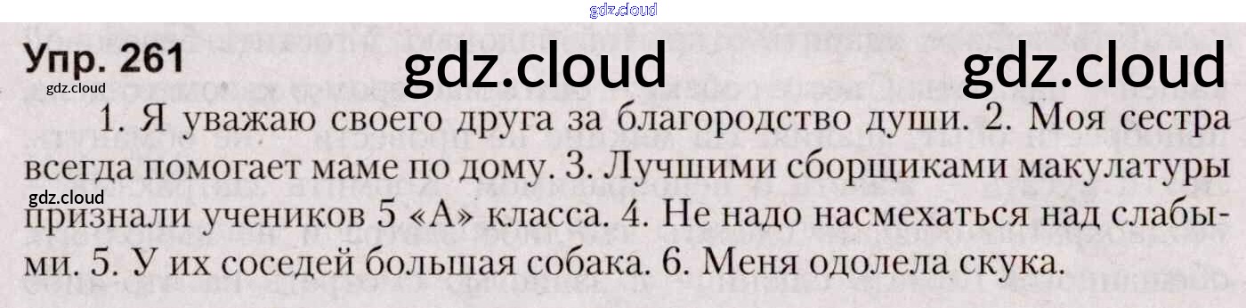 Ответ на задание 261 Учебник Русский язык за 5 (пятый) класс Мурина, Игнатович, Жадейко 2014 Часть 1, 2