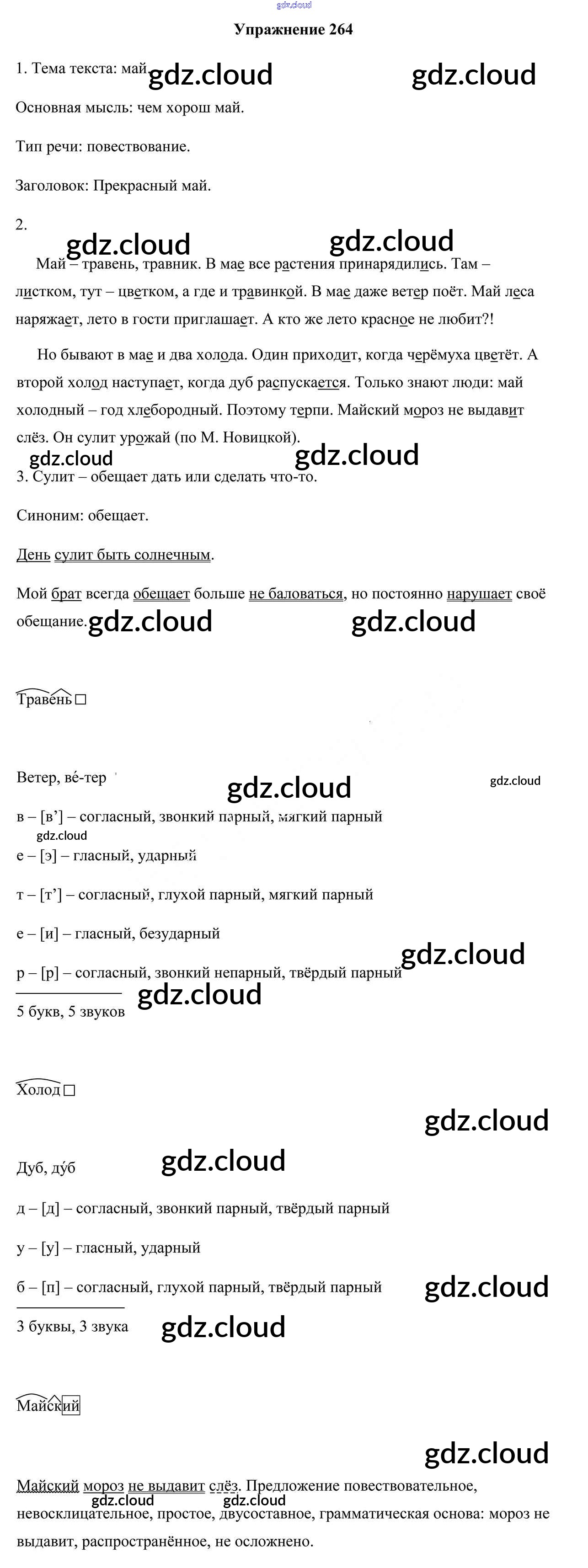 Ответ на задание 264 Учебник Русский язык за 5 (пятый) класс Мурина, Игнатович, Жадейко 2014 Часть 1, 2