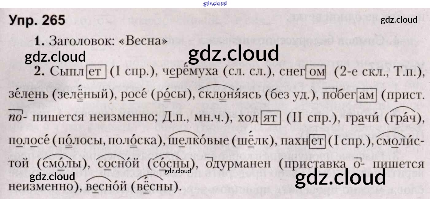 Ответ на задание 265 Учебник Русский язык за 5 (пятый) класс Мурина, Игнатович, Жадейко 2014 Часть 1, 2