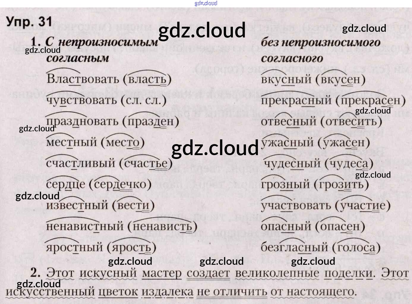 Ответ на задание 31 Учебник Русский язык за 5 (пятый) класс Мурина, Игнатович, Жадейко 2014 Часть 1, 2