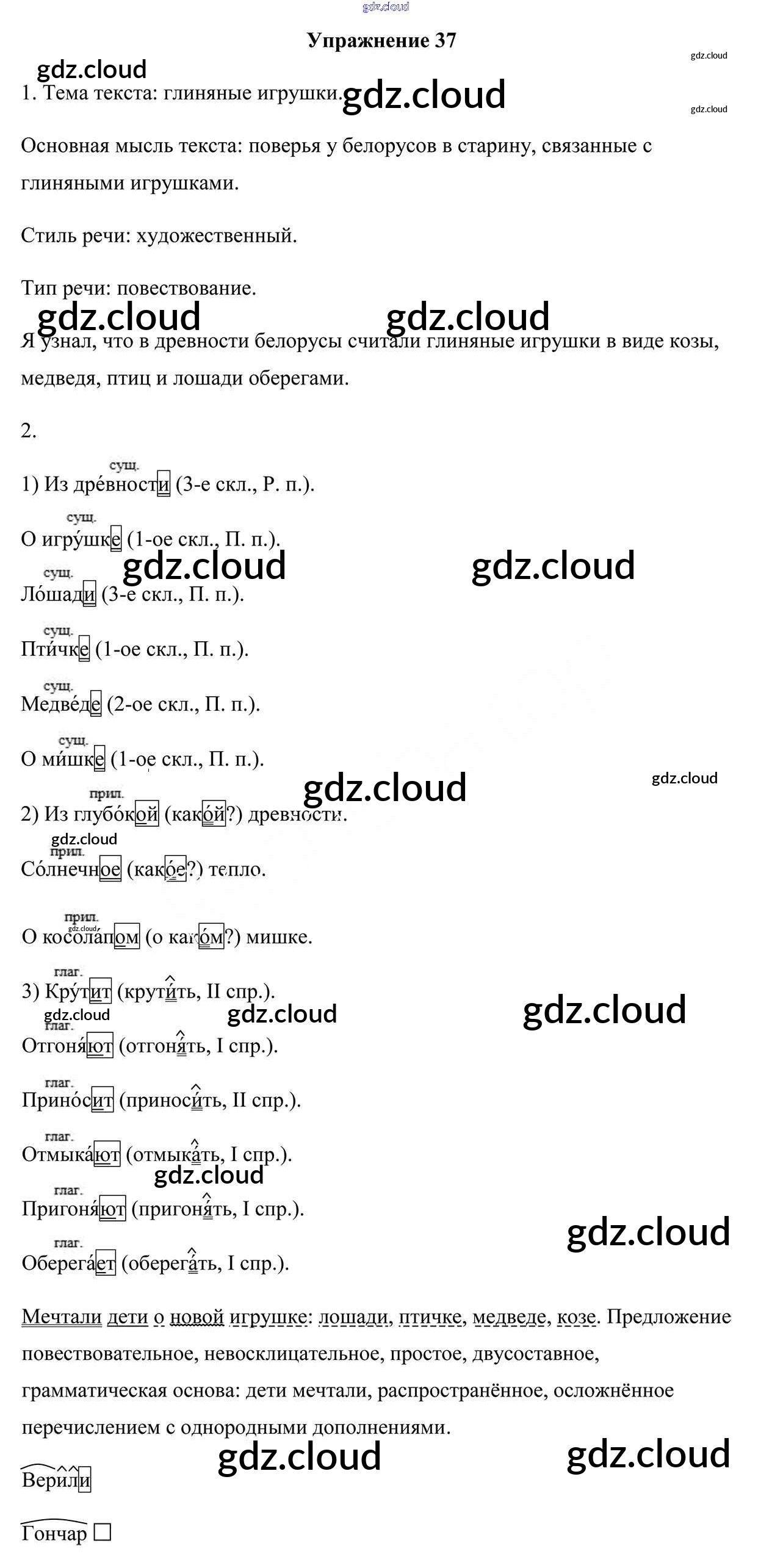 Ответ на задание 37 Учебник Русский язык за 5 (пятый) класс Мурина, Игнатович, Жадейко 2014 Часть 1, 2