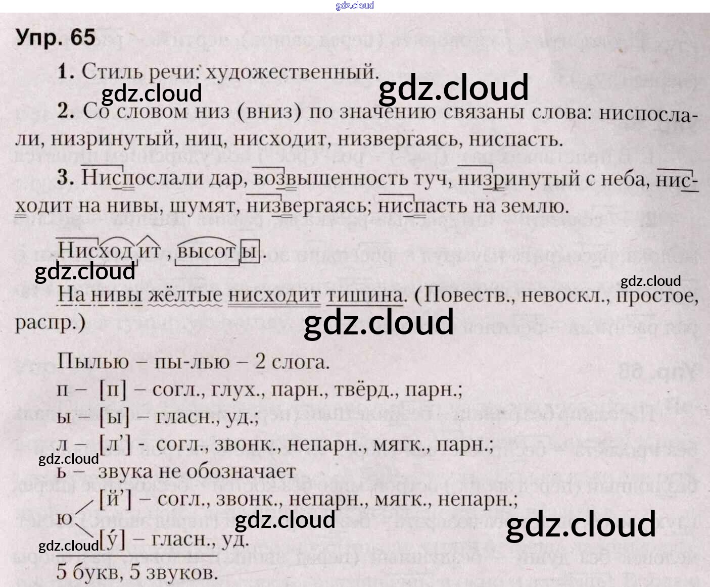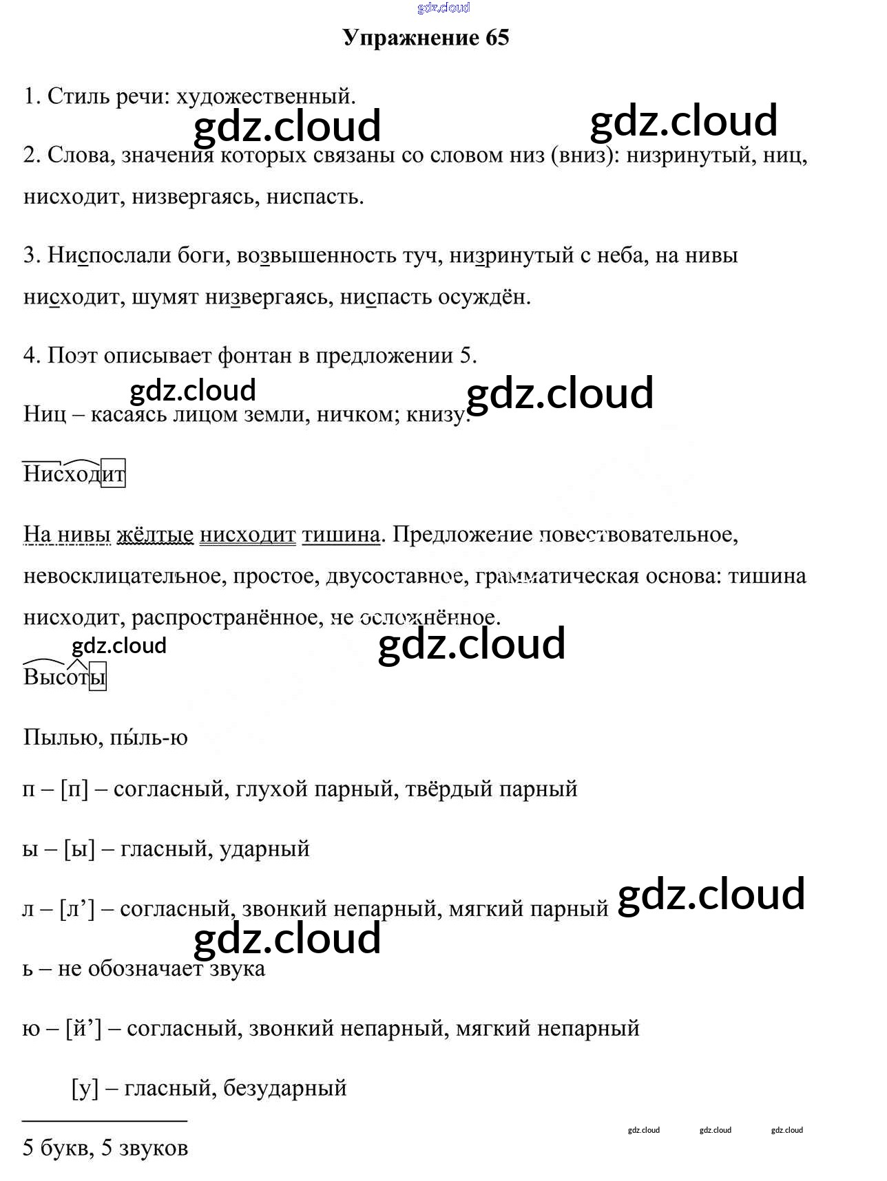 Ответ на задание 65 Учебник Русский язык за 5 (пятый) класс Мурина, Игнатович, Жадейко 2014 Часть 1, 2