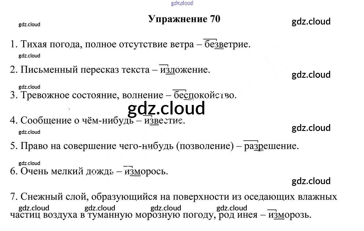 Ответ на задание 70 Учебник Русский язык за 5 (пятый) класс Мурина, Игнатович, Жадейко 2014 Часть 1, 2