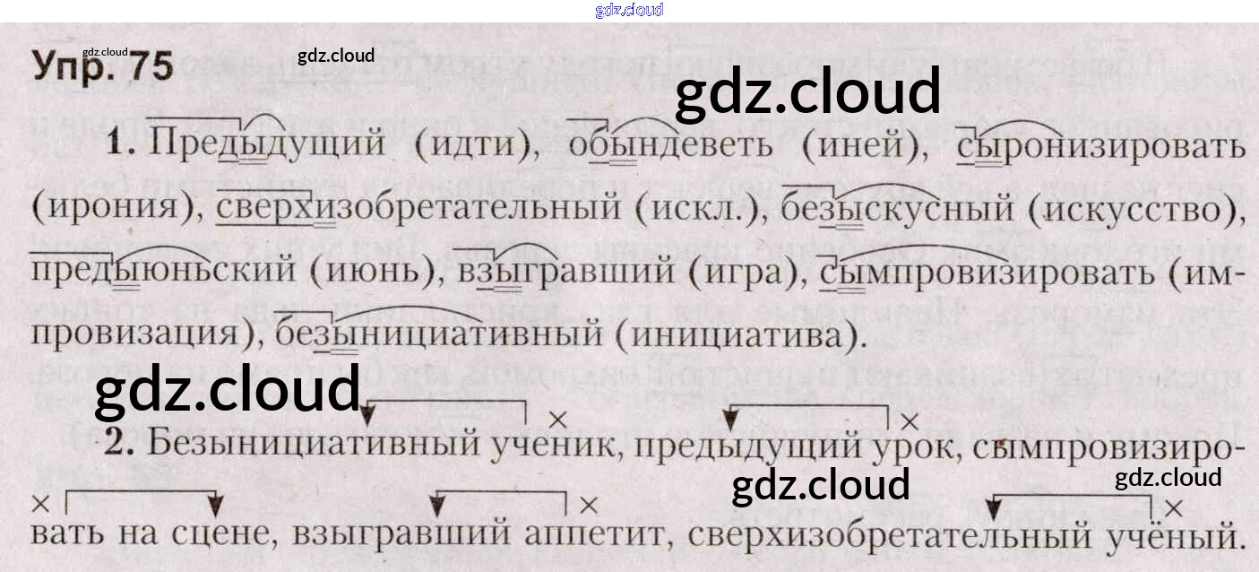 Ответ на задание 75 Учебник Русский язык за 5 (пятый) класс Мурина, Игнатович, Жадейко 2014 Часть 1, 2